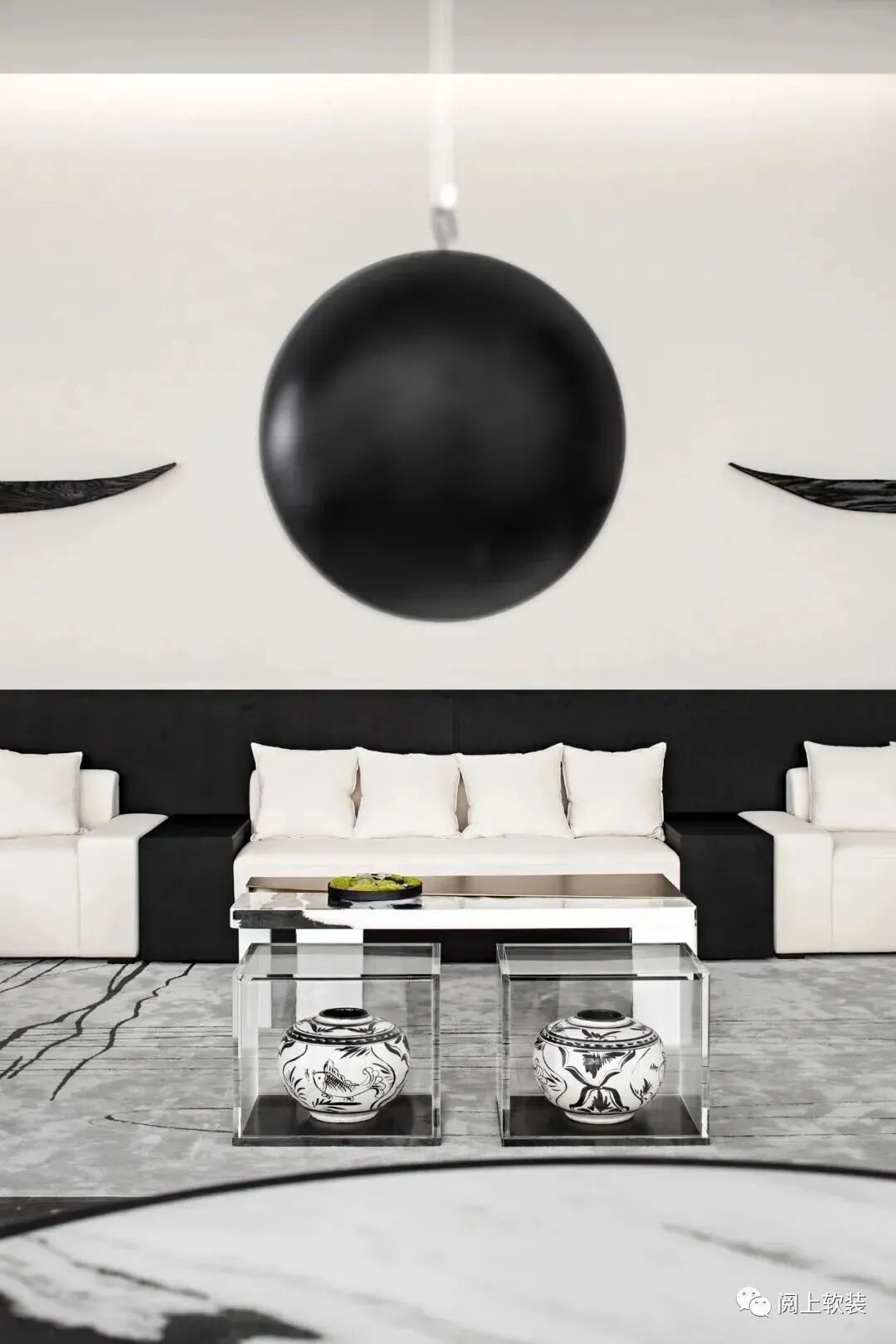 諦聽就如愛利亞學派芝諾四大悖論之一的二分說,如何分辨得了世上所有的非黑即白。在傳承淮河文化的同時融入現代化風格的趨勢,減弱傳統東方的濃度,運用傳統藝術的形制變化,在灰的色彩調度中,打破常規思維,去標簽化,為這座園林城市打造展示全新舒適的人居空間的二分美學。